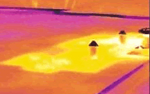 Leakage of radiant piping under a concrete slab is very difficult to locate without the use of infrared, and absolutely simple to locate in a matter of minutes with minimal floor damage using infrared.
